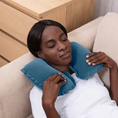 The Bestway Flocked Travel Pillow is an accessory designed to offer excellent neck support in various situations, such as camping or traveling. Its ergonomic design perfectly adapts to the shape of the neck, providing comfort during rest. Made with flocked material, the pillow is soft to the touch, enhancing the user experience. Additionally, it is lightweight and easy to inflate and deflate, making it a convenient option for those seeking practicality. Since it occupies little space when stored, it is ideal for packing in backpacks without adding unnecessary weight. Available in assorted colors, it offers a customizable option that suits each user's preferences. Maintenance is simple: just wipe its surface with a damp cloth to keep it in optimal condition. This pillow is perfect for use during travel, camping, or even at home, becoming a versatile complement that ensures quality rest wherever you are.