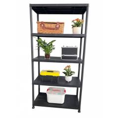 The Marbueno plastic shelf provides a versatile and functional solution for storage and organization in any home space. With five shelves supporting a maximum weight of 35 kg each, this shelf has a total load capacity of 175 kg, making it a robust and durable choice. Its dimensions of 90x40x180 cm are optimal for small spaces, and its classic black design allows it to seamlessly blend into environments such as kitchens, bathrooms, pantries, and even outdoors like terraces and gardens. Cleaning is simple; all that is needed is a damp cloth to maintain its appearance, avoiding abrasive products. Assembly is intuitive and straightforward by following clear instructions, using a mallet to ensure all parts are secure. The Marbueno shelf is ideal for those seeking a practical and stylish solution for their home, offering functionality without compromising aesthetics.