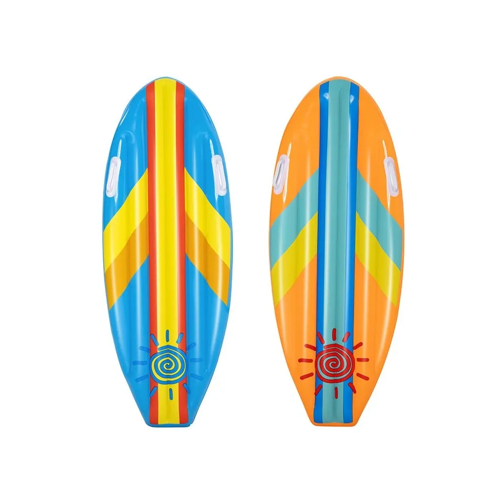 The Bestway inflatable Surf mattress is specifically designed for children aged 3 to 10 years. It is made of durable and safe materials that ensure resistance and security during use. Equipped with handles, these mattresses are easy to transport, making them the perfect choice for the garden, camping, beach, or pool. Its colorful design is appealing to children, encouraging outdoor activities during the summer. The mattress is lightweight, making it easy to inflate and deflate, ensuring a hassle-free user experience. It is advisable to supervise children while using the mattress to ensure a safe and enjoyable aquatic experience.