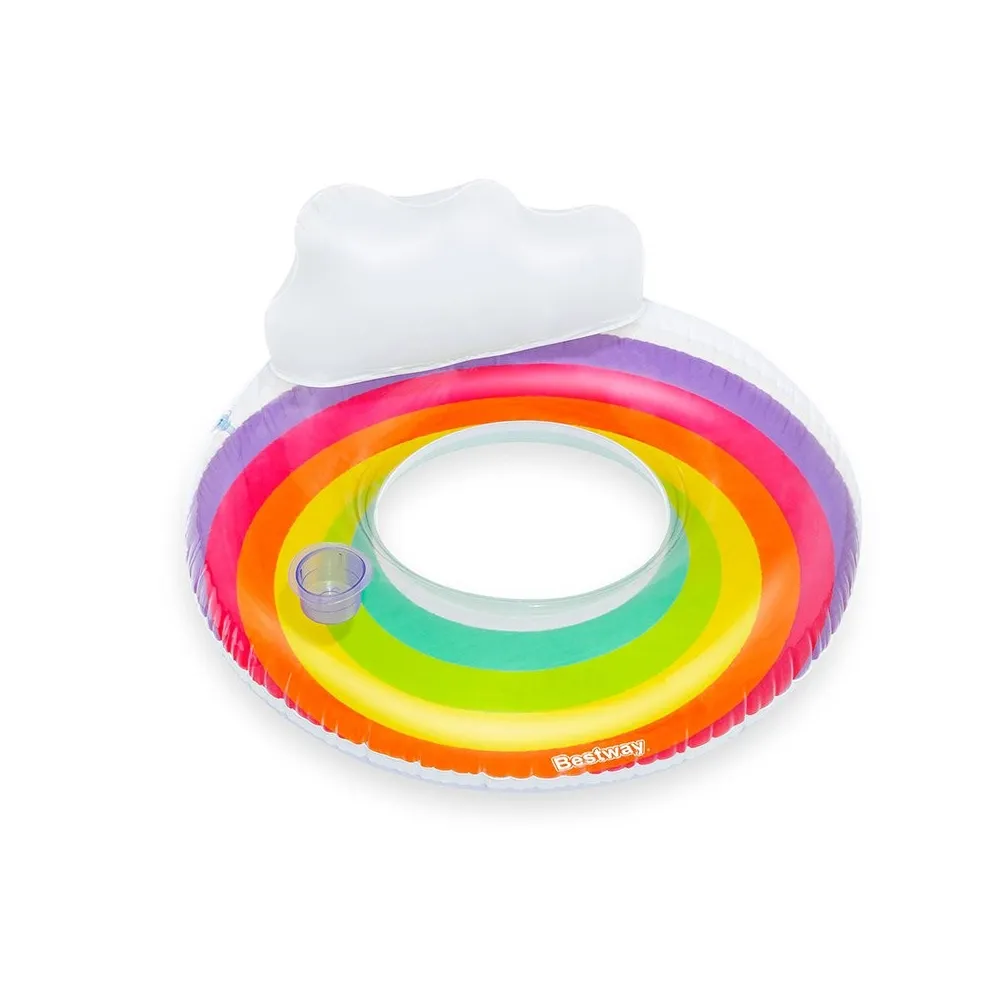 The Rainbow Inflatable Wheel by Bestway features a diameter of 107 cm, making it the perfect choice for summer enjoyment. Designed for children aged 12 and above, this float offers a safe and fun experience in the water. Its colorful and attractive design will catch the attention of kids, providing hours of entertainment. Made with durable and sturdy materials, it ensures usability in both the pool and at the beach. Additionally, its lightweight nature makes it easy to transport and store. To maintain its functionality, it is advisable to deflate and store it in a dry place when not in use. This float is ideal for sunny days and water activities, providing a safe experience thanks to its robust design, allowing children to enjoy the water with confidence, ensuring that every moment is memorable.