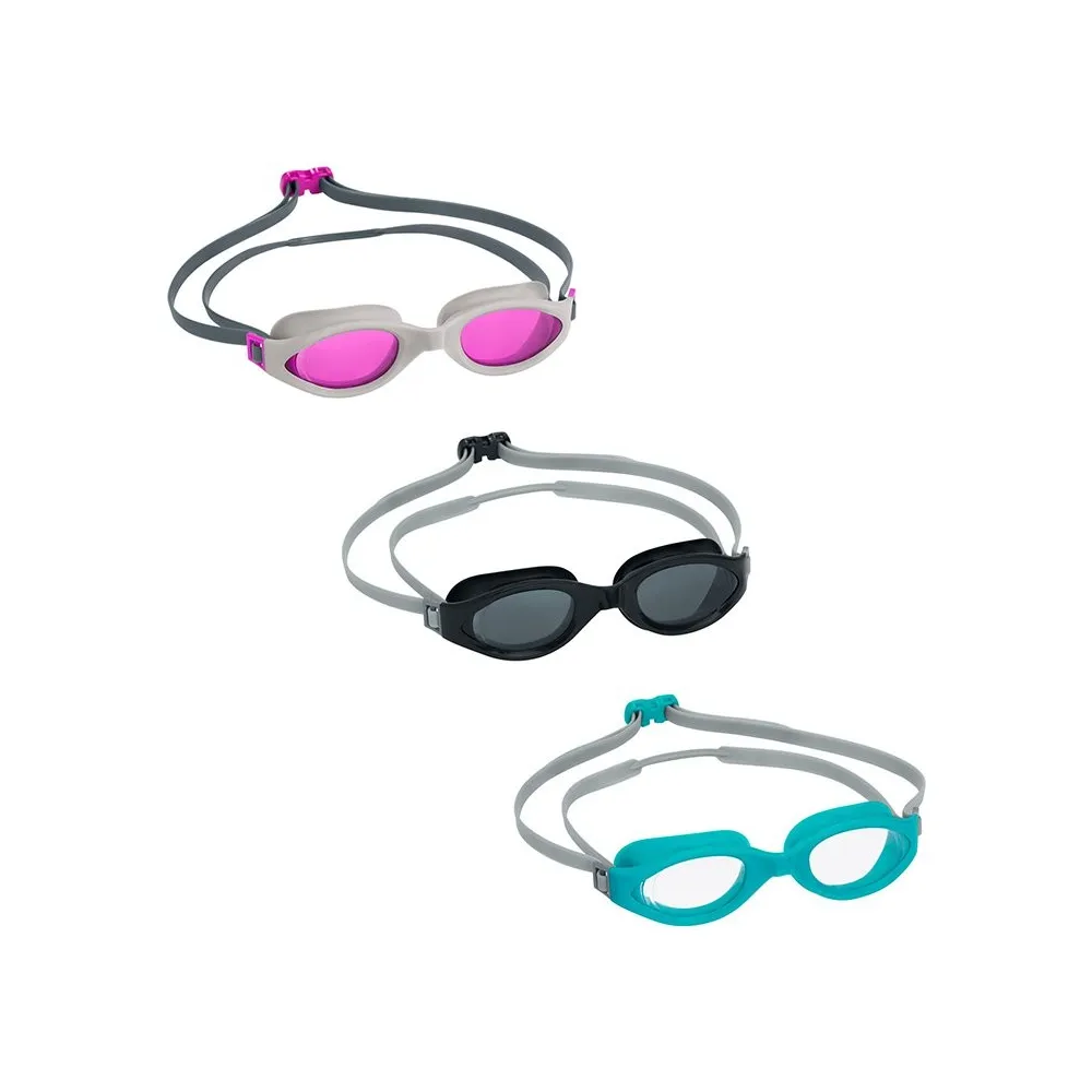 Bestway swimming goggles are designed for adults aged 14 and over, ideal for any aquatic activities in the pool or at the beach. The adjustable silicone strap provides increased comfort and a perfect fit, allowing swimmers to focus on enjoying their activity without worrying about the goggles slipping off. Their sleek and modern design makes them an attractive option for young people. These goggles offer UV protection to shield the eyes from sun damage and ensure clear visibility underwater, enhancing the swimming experience. They are suitable for use both at the beach and in pools, making them a versatile accessory for aquatic activity enthusiasts. Additionally, proper maintenance is recommended, including rinsing with fresh water after each use and storing in a dry place away from direct sunlight.