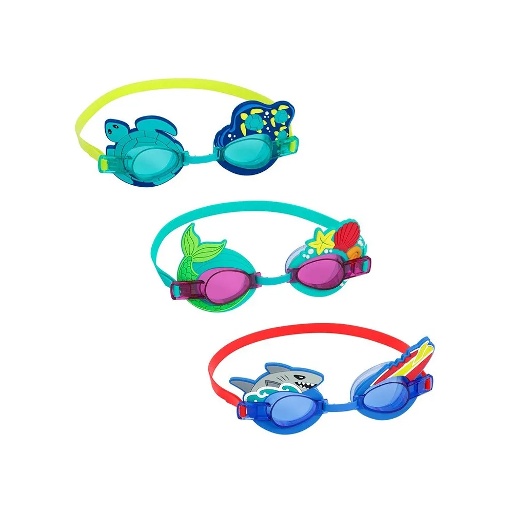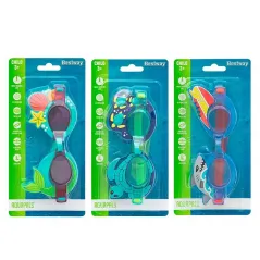 Bestway swimming goggles are specifically designed for children over 3 years old, providing a fun and safe experience in the water. Featuring adjustable silicone straps, they fit comfortably on a child's head. Their colorful design appeals to young users, making them ideal for swimming pools, beaches, or any outdoor activity. Additionally, these goggles offer UV protection, safeguarding children's eyes while they enjoy summer activities. They are easy to clean and should be kept dry and stored in a cool, dry place. It is recommended to supervise children while wearing the goggles, ensuring a safe and enjoyable swimming experience.
