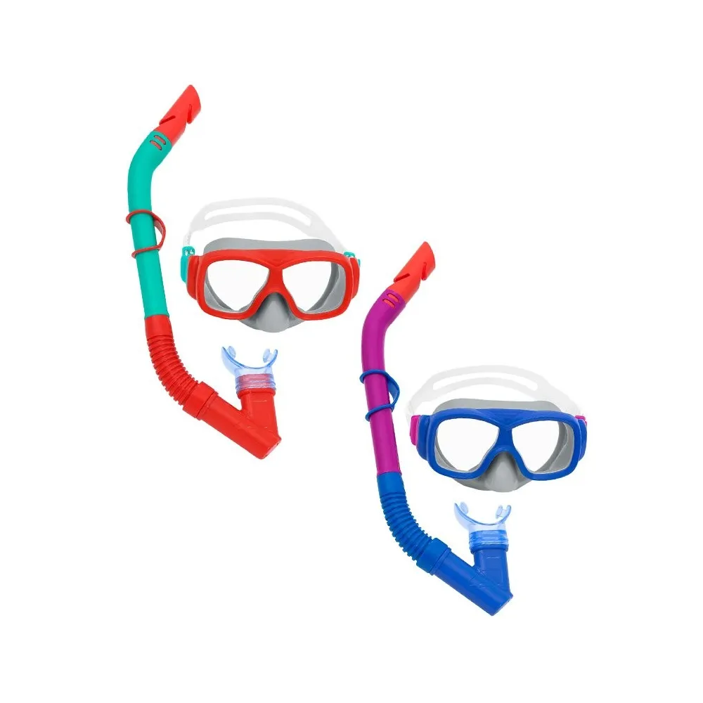 The Bestway Junior Mask and Snorkel Set is specifically designed for children over 7 years old. This set includes a mask equipped with a purge valve for easy handling and a snorkel that provides excellent visibility underwater. Its comfortable and lightweight design allows children to enjoy long hours of fun in the water, whether at the beach or in the pool. Children should be supervised while swimming to ensure their safety. The set is available in assorted colors, allowing kids to choose their favorite. Maintenance of the product is straightforward; simply rinse with fresh water after use and air dry. With this set, the swimming experience becomes a true adventure, promoting fun and enjoyment in the water throughout the summer.