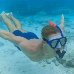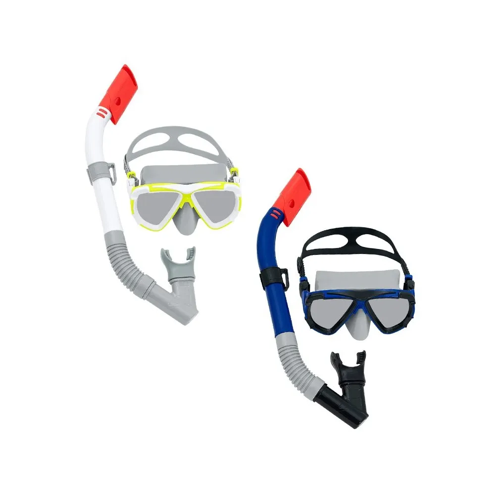 The Bestway 24053 mask and snorkel set is specifically designed for adults, enhancing the swimming experience. Featuring an ergonomic design, the mask fits perfectly on the face, ensuring comfort during use. The snorkel includes a purge valve, allowing for quick drainage of accumulated water, facilitating comfortable and efficient breathing underwater. Made from high-quality materials, it ensures durability and safety, making it an ideal choice for both the beach and pool. This set is perfect for those looking to enjoy summer with confidence and style. In addition, its attractive, colorful design makes it not only functional but also aesthetically pleasing. It is an excellent choice for both beginners and experienced swimmers.