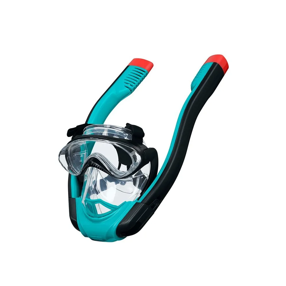 The Bestway double tube snorkel is crafted to provide a comfortable and safe swimming experience for children aged 12 and above. With an ergonomic design that fits the shape of the user's face, this snorkel ensures a comfortable fit and excellent usability in various aquatic environments. The integrated purge valve facilitates easy cleaning, preventing water accumulation in the tube, which is crucial during use. Additionally, the anti-fog system guarantees clear visibility, allowing users to enjoy underwater views without obstruction. Made with high-quality materials, this snorkel is durable and built to withstand frequent use in both the pool and at the beach. It is ideally suited for recreational activities that promote sport and fun in the water, helping children to explore the underwater world with safety and confidence.