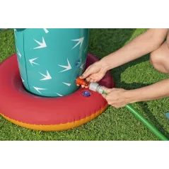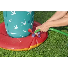 The Bestway inflatable cactus sprinkler is the perfect solution to keep children cool during the summer. Measuring 74x56x104 cm, this product is made from durable and resistant materials designed specifically to withstand children's play. It is easy to inflate and deflate, facilitating storage and transport. Suitable for children aged 2 and over, it is ideal for use in gardens, pools, or during camping trips, providing hours of outdoor fun. Additionally, it features sprinklers that spray water, adding a refreshing element to playtime. Be sure to supervise children while using the product and keep it away from sharp objects to extend its lifespan. This accessory is not only fun but also encourages physical activity and outdoor play.