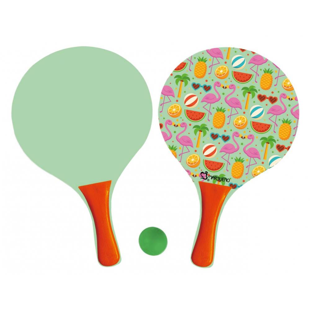 The Marbueno wooden paddles are perfect for enjoying recreational activities at beaches, pools, and gardens. With a size of 38x24x0.6 cm, each paddle is made of high-quality wood ensuring strength and durability. Its attractive flamingo design makes it an ideal accessory for any outdoor playday. Perfect for families and groups of friends, providing hours of entertainment. To maintain the paddles in optimal condition, it is recommended to clean them with a damp cloth and dry them after use. Avoid prolonged exposure to water and direct sunlight to preserve their quality. With Marbueno paddles, every sunny day is an opportunity to enjoy together.