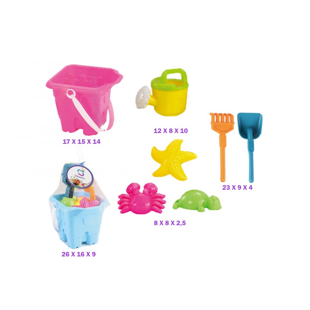 The MARBUENO beach bucket set is perfect for children to have fun at the beach, pool, or garden. With a size of 26x16 cm, this set includes a bucket, a spade, and molds, all made of durable materials. Its assorted colors are appealing to children, encouraging creativity as they build sandcastles and explore their surroundings. This product is easy to transport and store, making it ideal for any adventure. To maintain it in good condition, it is recommended to rinse with fresh water after use and store it in a dry place. The MARBUENO beach bucket set offers hours of fun for children in the sun.