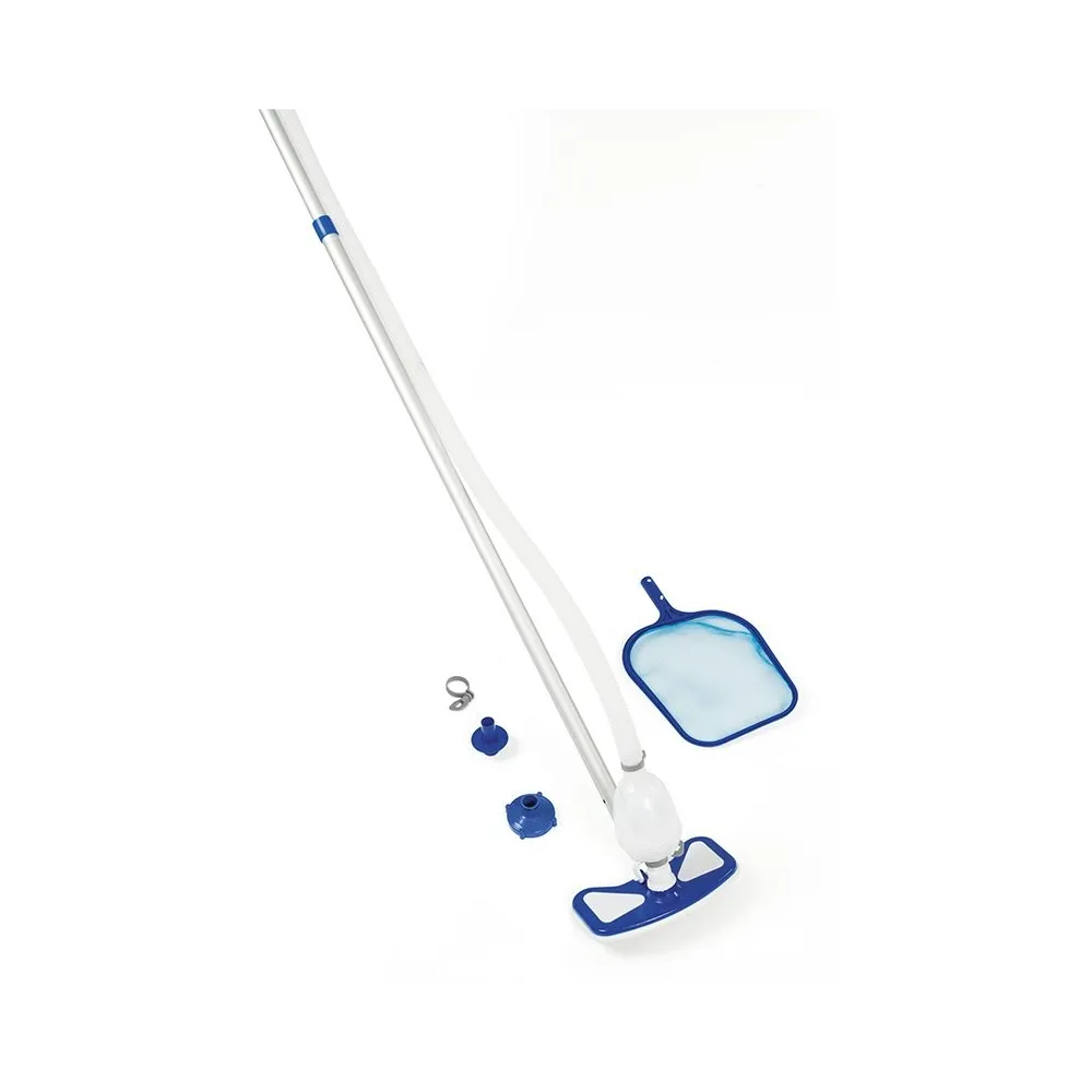The Bestway maintenance kit is a key tool for optimal pool care. It includes a sturdy 279 cm pole designed to easily reach all corners of the pool, enabling effective cleaning. Its ergonomic design ensures comfortable handling and reduces effort during use. Made from durable materials, this kit guarantees a long lifespan. It is fully compatible with Bestway pools, making it the ideal choice for their maintenance. It comes with all necessary accessories for complete cleaning, ensuring your pool is free of leaves, insects, and other debris that may affect water quality. Regular maintenance not only prolongs the pool's lifespan but also promotes a pleasant and healthy swimming experience.