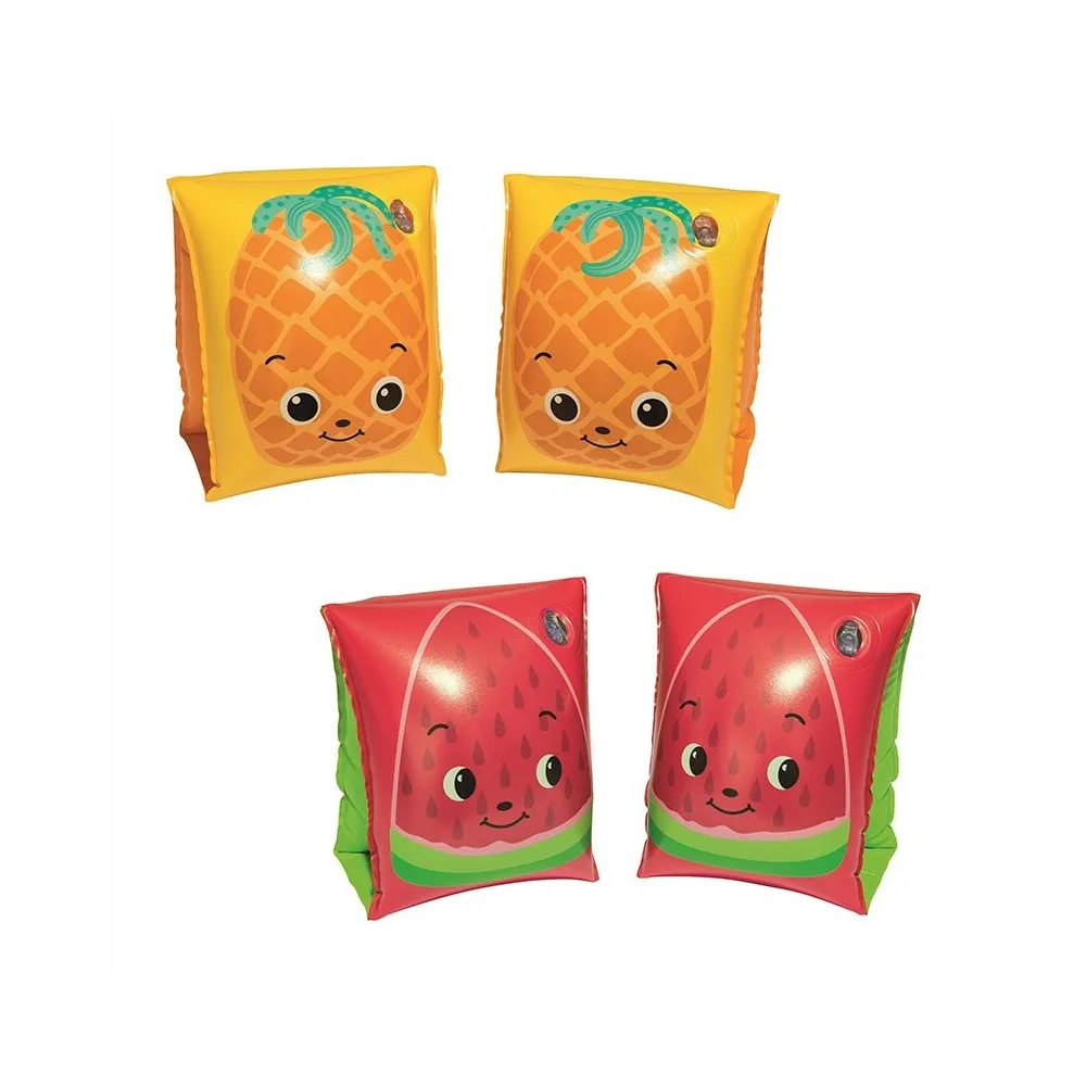The Bestway inflatable arm bands for kids are designed to provide safety and confidence during water activities. Made with high-quality materials, these bands ensure durability and resistance to intensive use. Their colorful fruit design captures children's attention, making them more open to learning how to swim. They are easy to inflate and deflate, making them the perfect accessory to take to the pool or beach. Providing the right buoyancy, they allow children to feel secure while playing and exploring the water. Suitable for various contexts, from the garden to camping during the summer, these arm bands help children enjoy water fun with family. They are ideal for promoting water learning and fun, ensuring a positive and safe experience.