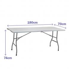 The Marbueno folding table made of resin and steel is the ideal solution for outdoor events such as garden meals, camping, or beach outings. With a capacity for 6 to 8 people, its modern design in white and gray ensures it fits into any environment. Made with a resin tabletop and a steel frame, it offers durability and stability. Its 3.5 cm thickness supports a maximum load of 150 kg, and its safety locking system ensures optimal stability. To maintain it in perfect condition, it is recommended to clean it with a damp cloth and avoid abrasive products. When not in use, store it in a dry place to preserve its quality. This table is perfect for enjoying summer, providing comfort and functionality with every use.
