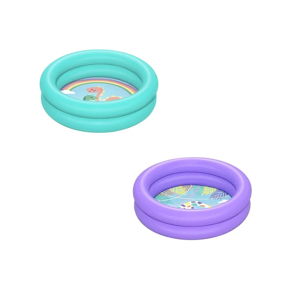 The Bestway inflatable children's pool features a diameter of 61 cm and a height of 15 cm, making it safe for children over 2 years old. Its design allows for quick inflation, making it easy to use in gardens, beaches, or campsites. Made from durable materials, this pool withstands active playtime, offering hours of fun. The vibrant colors attract children's attention, making each splash an exciting experience. It is a versatile choice for summer, ideal for enjoying playtime and water fun.