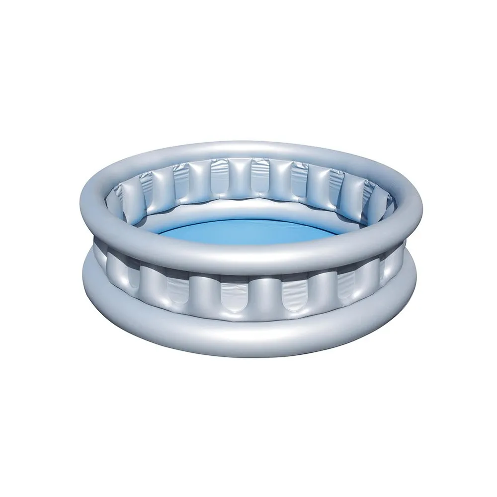 The Bestway inflatable kids' pool is a safe and fun option for children aged 3 and up, perfect for use in small gardens or patios. With dimensions of 152x43 cm and an attractive spaceship design, this pool features 3 air chambers that provide added safety and stability while little ones play. Made from durable material, it is easy to inflate and deflate, making it a practical accessory for hot days. Its capacity allows multiple children to play at the same time, ensuring hours of enjoyment. It is advisable to always supervise children while using the pool to ensure a safe experience. To keep it in optimal condition, it should be cleaned and dried properly after each use.