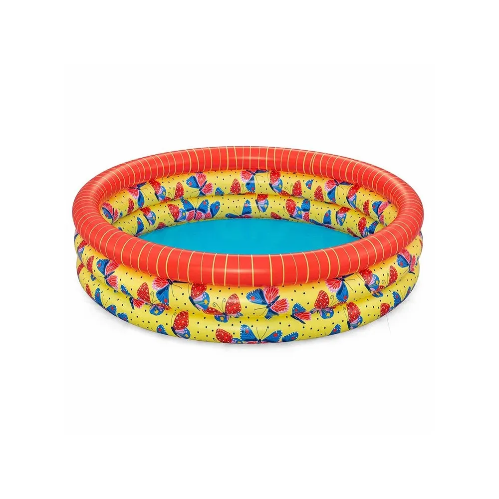 The Bestway inflatable children's pool is a perfect choice for sunny summer days. With dimensions of 168 x 38 cm, it is designed for kids over 2 years old. Its three-ring structure provides stability and safety during playtime. The attractive butterfly design encourages little ones to enjoy the outdoors. It is made from durable materials that ensure a long lifespan, allowing for use in various settings such as the garden, the beach, or camping. The pool is easy to inflate, making it convenient for transport and storage. Adult supervision is recommended while children play in the water to ensure a safe and enjoyable experience.