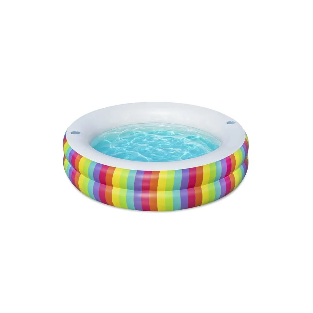 The Bestway inflatable pool for kids is perfect for enjoyment in the garden during summer. Measuring 206x206x51 cm, it is suitable for children aged 6 and up. Its attractive rainbow ring design not only offers a fun atmosphere but also adds a colorful element. Made of durable and resistant materials, this pool is easy to inflate and deflate, facilitating its storage. To keep it in optimal condition, regular cleaning is recommended, and ensure it is completely dry before storing. It is perfect for enjoying fun outdoor moments with family and friends, providing hours of play and refreshment during hot days.