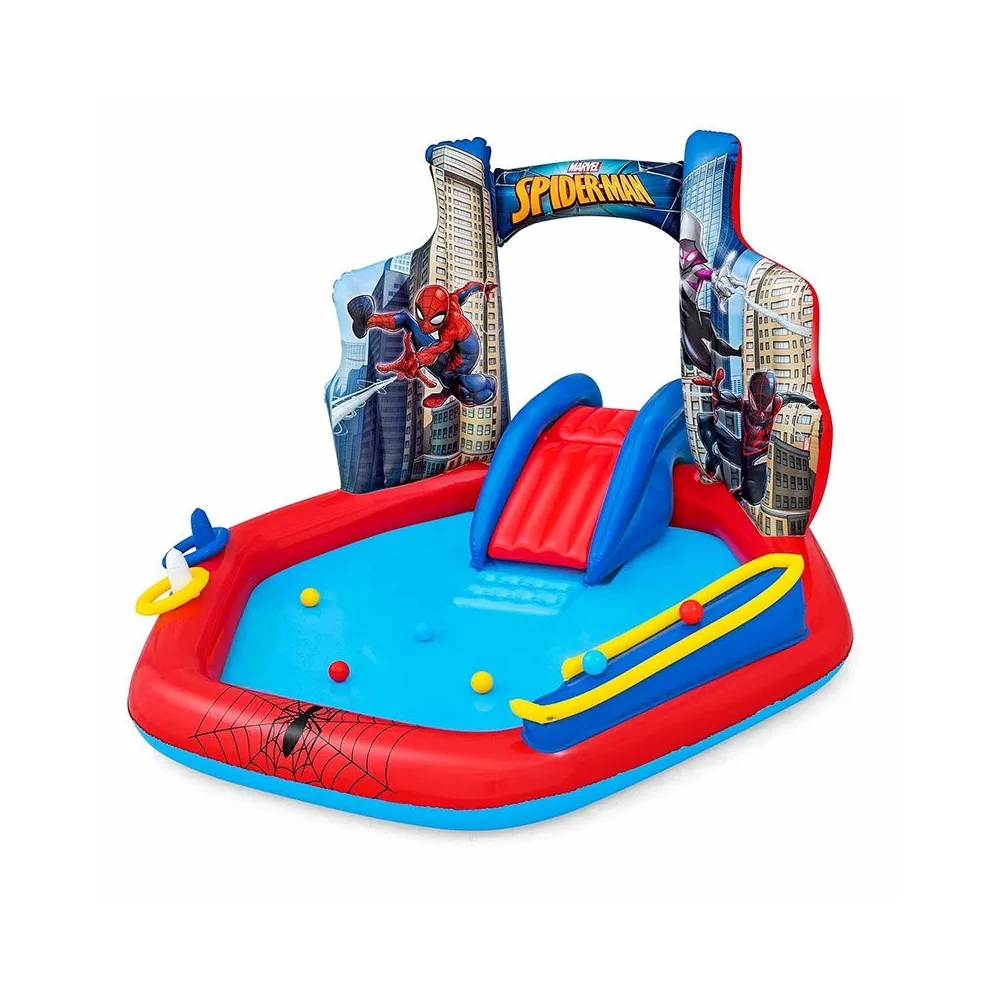 The Inflatable Spiderman Playpool by Bestway is perfect for children to enjoy water in the garden. Measuring 211x206x127 cm, it is suitable for kids aged 2 and above. Designed for play and refreshment, this pool is easy to inflate and deflate. Its attractive design will delight young ones, and the material is safe and durable. The pool features a drainage system that makes emptying it easy, turning summer days into memorable moments. Suitable for birthday parties or an afternoon of games with friends, it encourages outdoor activity and fun in the garden. Always supervise children while they play in the water.