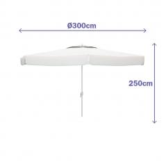 The Marbueno aluminum umbrella, with a 300 cm diameter, is ideal for providing shade in outdoor areas such as gardens, patios, terraces, and restaurants. Its modern and elegant design makes it suitable for both residential and commercial use. Constructed with two posts and 8 aluminum ribs, the umbrella offers stability and durability. The 160 g/m² polyester canopy effectively filters sunlight and keeps the shaded area comfortable. The double chimney-type canopy system allows air circulation, enhancing stability on breezy days. This umbrella is easy to set up and take down, coming with a carrying bag with a handle for easy transport. Weighing only 3.50 kg, it is very practical to move from place to place. It is important to note that the base or support is not included. The package contents include one umbrella and one bag.
