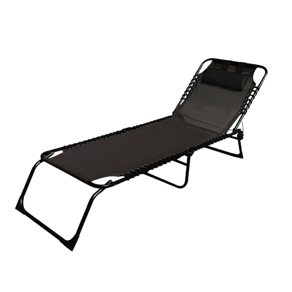 The Marbueno lounger is the ideal choice for enjoying moments of relaxation outdoors. Thanks to its lightweight yet robust steel base, it guarantees great resistance and durability, making it perfect for outdoor environments. Its electrostatic paint finish protects the structure from corrosion and the passage of time. This model features an elastic fastening system, distributing weight evenly and providing stability and safety to the user, capable of supporting up to 110 kg. The high-end textilene fabric is comfortable and ventilated, also offering resistance to weather conditions. Unlike other fabrics, it does not retain heat under the sun or adhere to the skin, allowing for hours of relaxation. The lounger includes a cushioned headrest pillow, perfect for reading or taking a nap in complete comfort. Its foldable and lightweight design, weighing only 5.5 kg, makes it easy to transport, ideal for moving from the garden to the beach. When folded, it takes up little space, making it easy to store during winter or perfect for travel. This product is not just a lounger; it is a personal refuge in your home to disconnect and enjoy the summer. Its modern style in black complements any outdoor space, compatible with both classic and contemporary decor. Materials: Steel, Textilene. Dimensions: Length 190 cm, Width 58 cm, Height 27 cm. Supported weight: Up to 110 kg. Item weight: 5.5 kg.