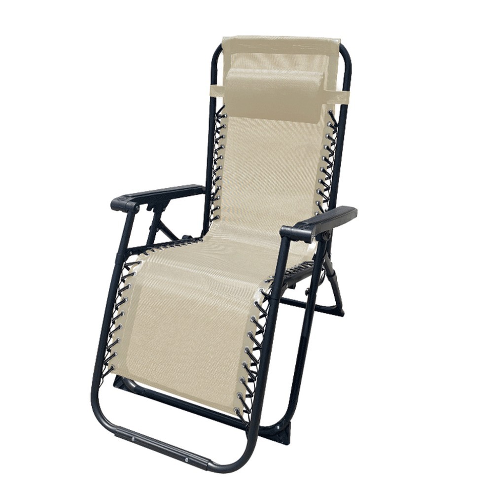 The Marbueno folding zero gravity lounger is designed to provide an unparalleled resting experience outdoors. Featuring a sturdy steel frame coated with electrostatic paint, it ensures durability and prevents corrosion. Its elastic support system keeps the fabric securely in place, offering comfortable and stable support with a capacity of up to 110 kg. The seat is made from breathable and flexible textilene, ensuring that even on hot days, the lounger remains cool and comfortable. It includes a padded and removable headrest cushion, ideal for reading or resting. Its foldable design and lightweight of only 6.5 kg make it easy to transport, perfect for use in the garden, by the pool, at the beach, or camping. Additionally, its beige finish and modern style integrate elegantly into any environment. The Marbueno lounger is not just a seat, but a personal space to disconnect and enjoy moments of well-being.