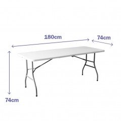 Marbueno Mesa Plegable Rectangular Resina Blanco Estructura de Acero Capacidad 6-8 personas Carga Máxima 150 kg 180X74X74 cm Catering, Jardin, Playa, Camping, Eventos y Terraza 10528