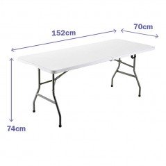 Marbueno Mesa Plegable Rectangular Resina Blanco Estructura de Acero Capacidad 4-6 personas Carga Máxima 150 kg 152X70X74 cm Catering, Jardin, Playa, Camping, Eventos y Terraza 10529