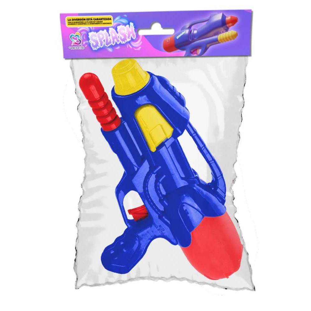 Fabricada en plástico resistente, esta pistola de agua utiliza presión de aire para lanzar chorros de agua a distancia. Ideal para usar en: