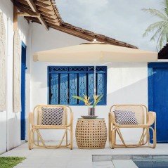 El techo de la sombrilla es doble, de tipo chimenea para favorecer la circulación del aire y hacerlo más estable en días de viento suave.